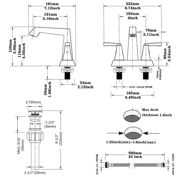 Commercial 4 in. Centerset 2-Handle 3 Hole Bathroom Sink Faucet with Pop Up Drain and Supply Lines in Oil Rubbed Bronze