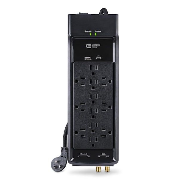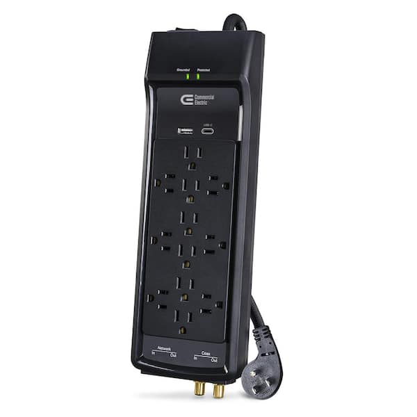 15 ft. 12-Outlet Surge Protector Braided Cord in Black