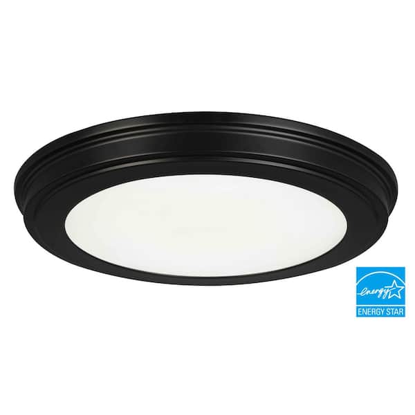 15 in. Matte Black 5-CCT LED Round Flush Mount, Low Profile Ceiling Light (2-Pack)