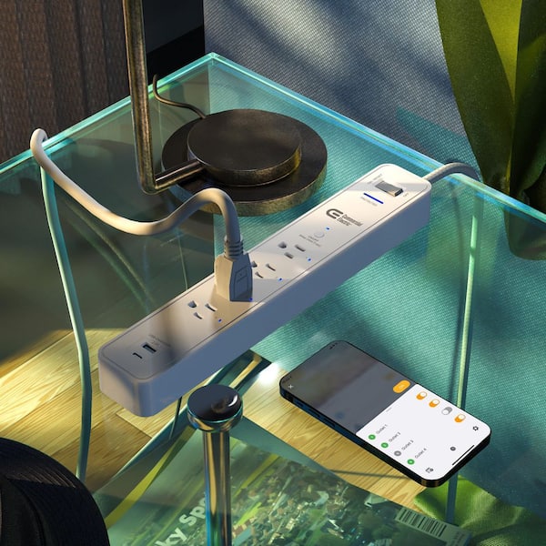 3 ft. 4-Outlet White Surge Protector Smart with USB Powered by Hubspace