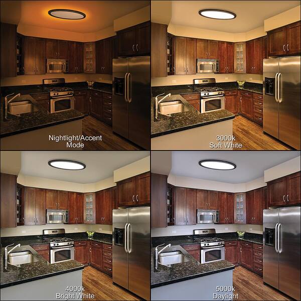 32 in. Oval Modern Oil Rubbed Bronze Crackle Lens LED Kitchen Light Flush Mount with Night Light Adjustable CCT 4-Pack