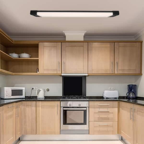 4 ft. Matte Black Deocrative End Caps 5250LM 75W LED Flush Mount Ceiling Light Adjustable CCT Night Light (12-Pack)