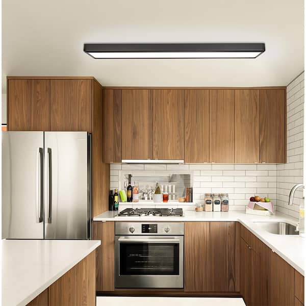 4 ft. x 10 in. Matte Black Back-Lit Integrated LED Panel Light Fixture 4000 Lumens 50W Adjustable CCT Dimmable (2-Pack)