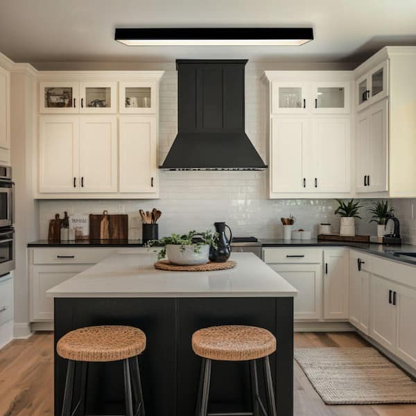 4 ft. x 8 in. Matte Black with White Oak Interior LED Flush Mount 3000 Lumens Adjustable CCT Kitchen Lighting (12-Pack)
