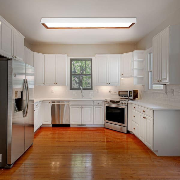 4 ft. x 8 in. White and Walnut Interior LED Flush Mount Ceiling Light 3000LM 42W Adjustable CCT Kitchen Light (4-Pack)