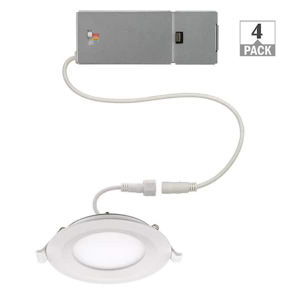 4 in. Adjustable CCT Integrated LED Canless Recessed Light Trim 650 Lumens Kitchen Bathroom Remodel Wet Rated (4-Pack)