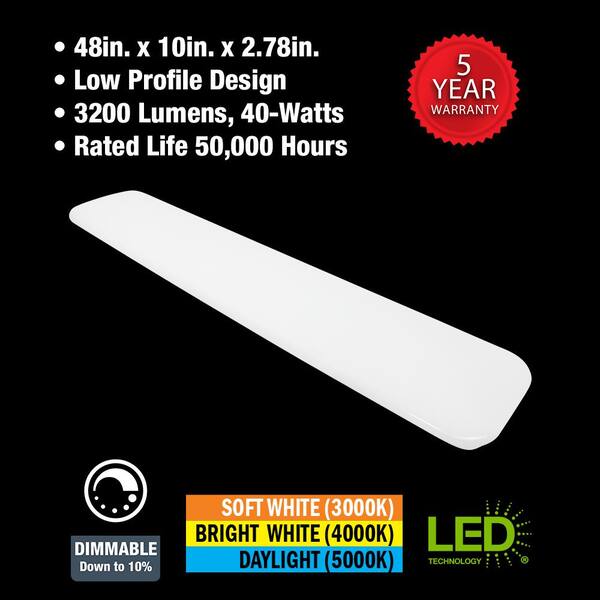 48 in. x 10 in. Classic White LED Flush Mount Closet Light 3200 Lumens 40-Watt Adjustable CCT Kitchen Light (8-Pack)