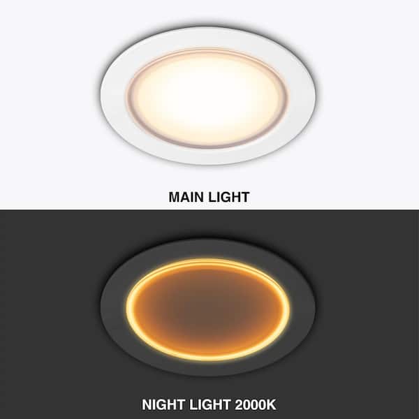 4in. Adjustable CCT and Lumen Canless IC Rated Dimmable Integrated LED Recessed Light Kit with Night Light