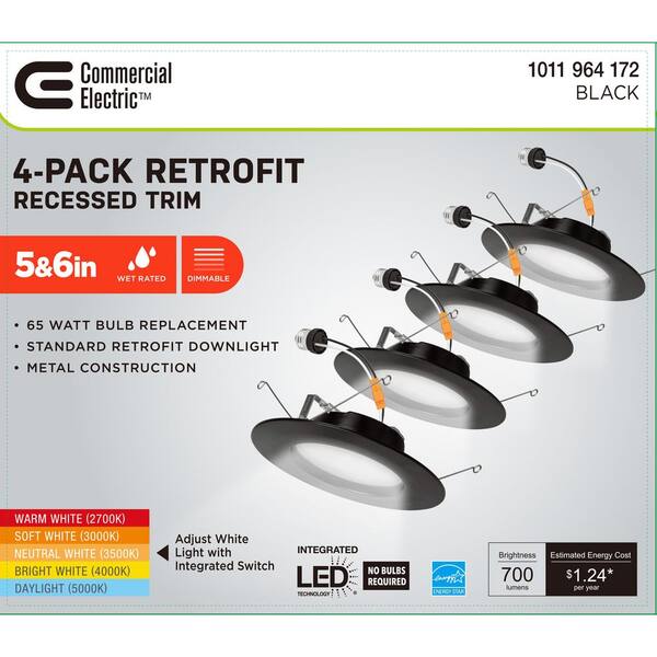 5/6 in. integrated LED Black Recessed Retrofit Light Trim with Selectable Color Temperature CEC-T20 (4-Pack)