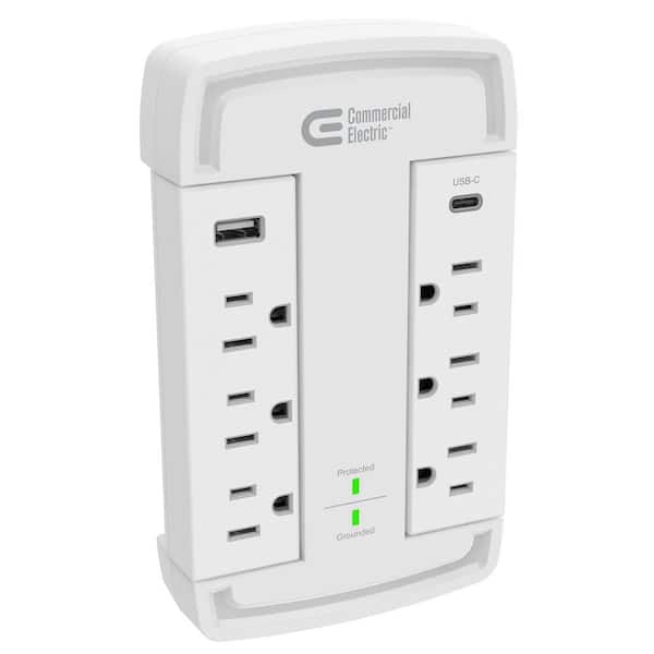 6-Outlet Wall Mounted Swivel Surge Protector with 1 USB-A and 1 USB-C, White