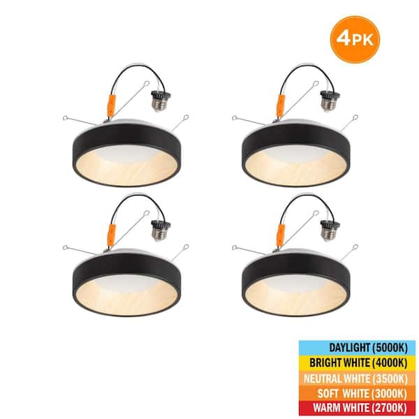 6 in. Retrofit Matte Black White Oak Accent Integrated LED Recessed Light Night Light Feature Adjustable CCT (4-Pack)