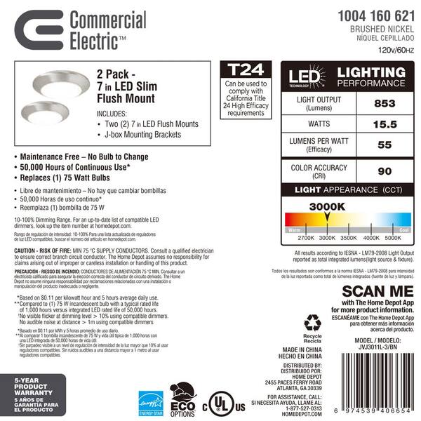 7 in. Brushed Nickel LED Mini Flush Mount (2-Pack)