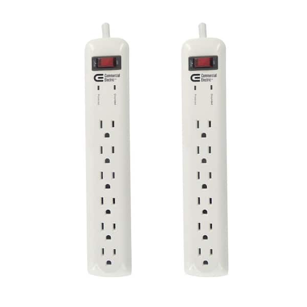 8 ft. 6-Outlet Surge Protector with 45-Degree Flat Angle Plug, White (2-Pack)