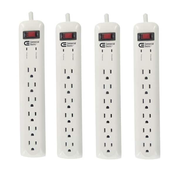 8 ft. 6-Outlet Surge Protector with 45-Degree Flat Angle Plug, White (4-Pack)
