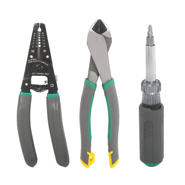 • Includes 11-in-1 multi-bit screwdriver, wire stripper and cutter