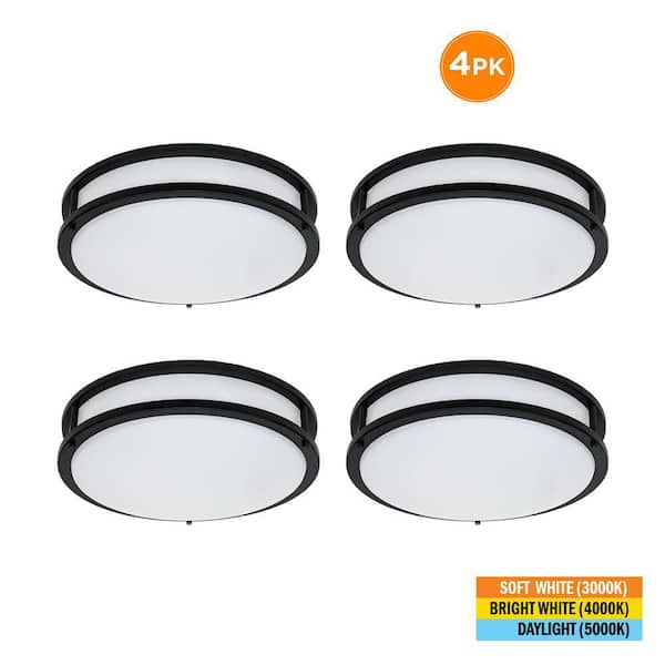 Orbit 15 in. Matte Black Round LED Flush Mount Ceiling Light 1600 Lumens 22W Adjustable CCT 120V Dimmable (4-Pack)