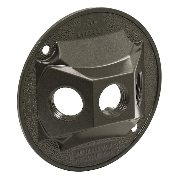 Round Metal Weatherproof Electrical Lamp Holder Cover with (3) 1/2 inch Holes, Bronze