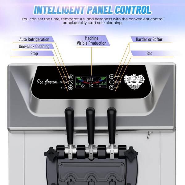 Commercial Soft Serve Ice Cream Machine 7.4 Qt. Silver 2+1 Flavor Ice Cream Maker Machine