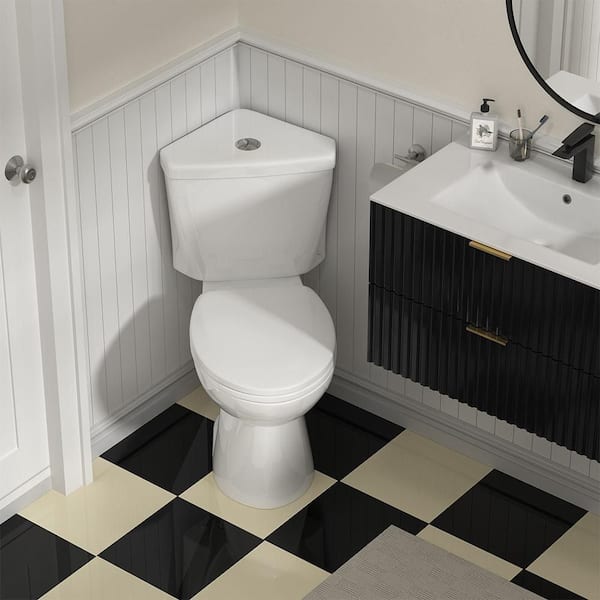 Compact Corner Bathroom Toilet, 2-Piece Elongated, 0.8/1.28 GPF Dual Flush, with Soft-Close Cover, ADA Compliant