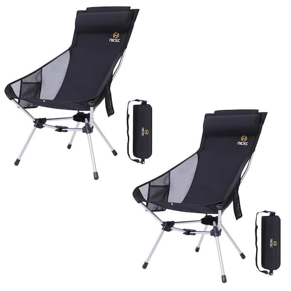 Compact High Back Camping Chair, Lightweight Foldable Camp Chair with Pillow & Carry Bag for Outdoors (Black, 2 Pack)