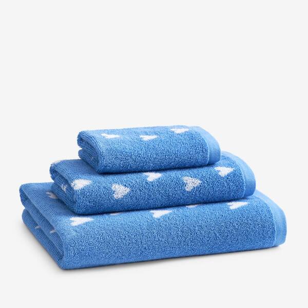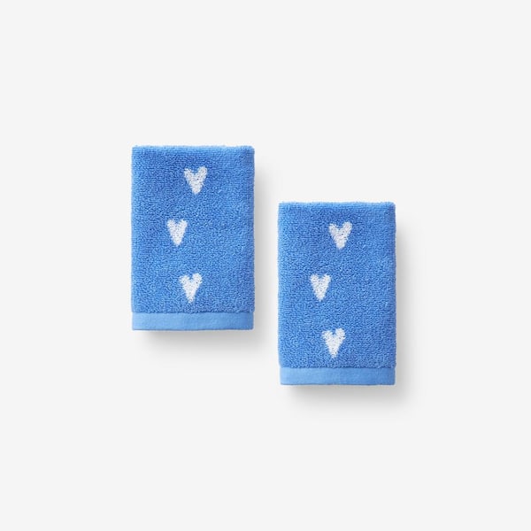 Company Kids Hearts Yarn-Dyed Blue Cotton Single Wash Cloth