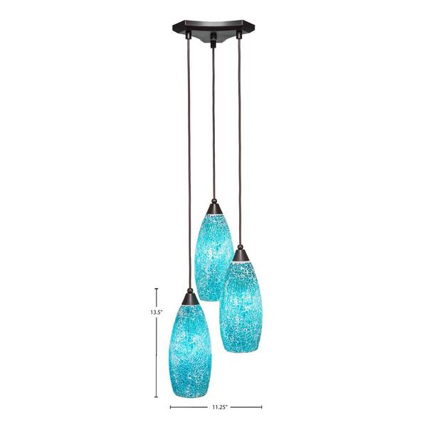 Condor 3 Light Dark Granite, Cluster Pendant Light with 5.5 in. Turquoise Fusion Glass Shades, No bulbs included