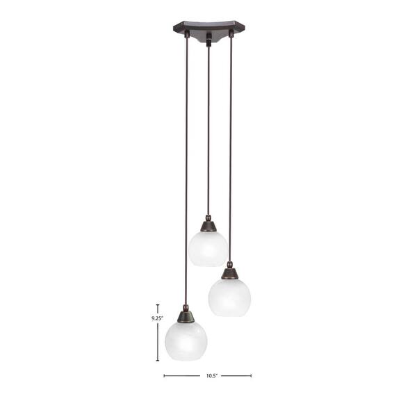 Condor 3 Light Dark Granite, Cluster Pendant Light with 5.75 in. White Marble Glass Shades, No bulbs included