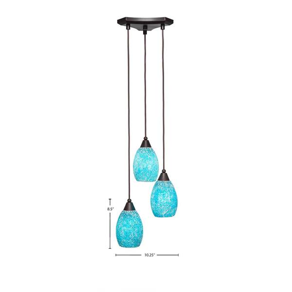 Condor 3 Light Dark Granite, Cluster Pendant Light with 5 in. Turquoise Fusion Glass Shades, No bulbs included