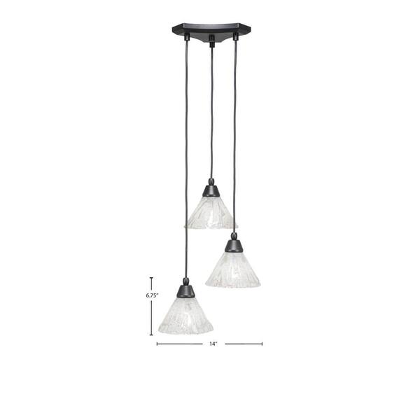Condor 3 Light Matte Black, Cluster Pendant Light with 7 in. Italian Ice Glass Shades, No bulbs included