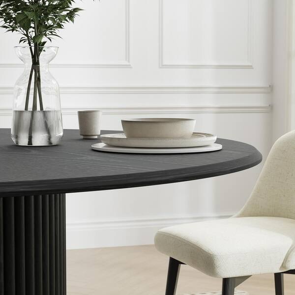 Cone Black Colored Wood 52" Column Base Wide Strip Duckbill Edge Dining Table for 6