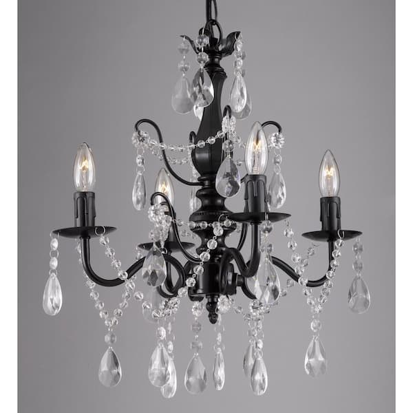 Contemporary 4-Light Black Iron and Crystal Chandelier