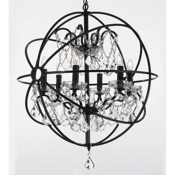 Contemporary 6 Light Orb Iron and Crystal Black Chandelier