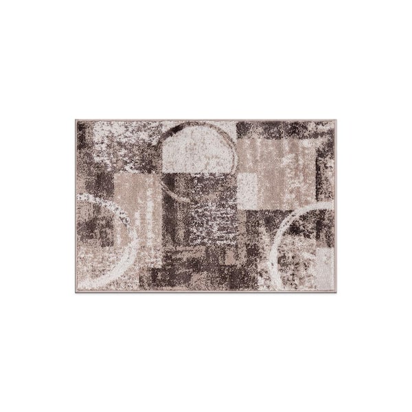 Contemporary Abstract Circle Design Brown 2 ft. x 3 ft. Indoor Area Rug