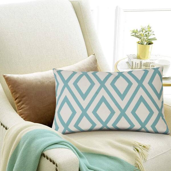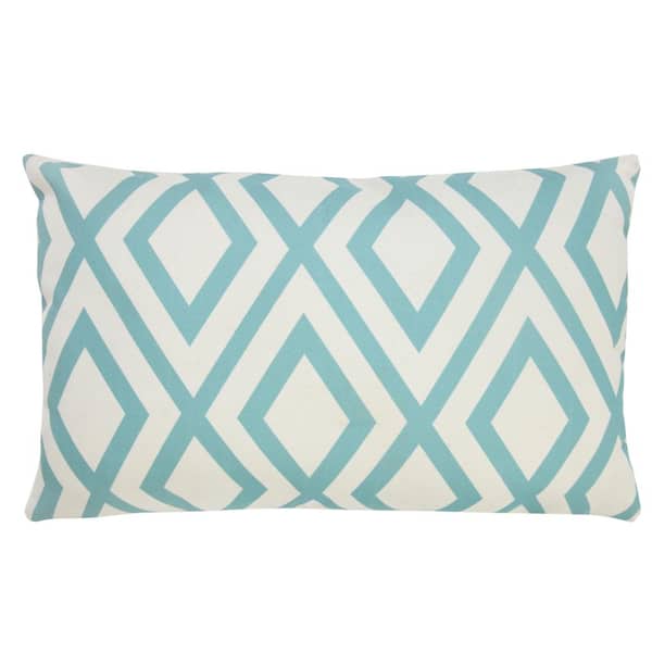 Contemporary Diamond Aqua Blue/Off-White 14 in. x 20 in. Lumbar Indoor/Outdoor Throw Pillow