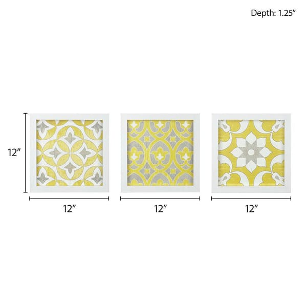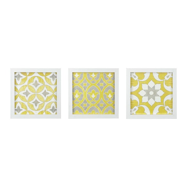 Contemporary Distressed Yellow Medallion 3-Piece Framed Wall Decor Art Print Set 12 in. x 12 in. for Living Room
