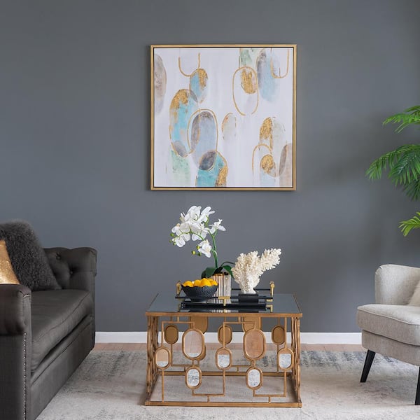 Contemporary Square Hand-painted Framed Oil Painting Wall Art Print, Glitter Accents, for Living Room 39 in. x 39 in.