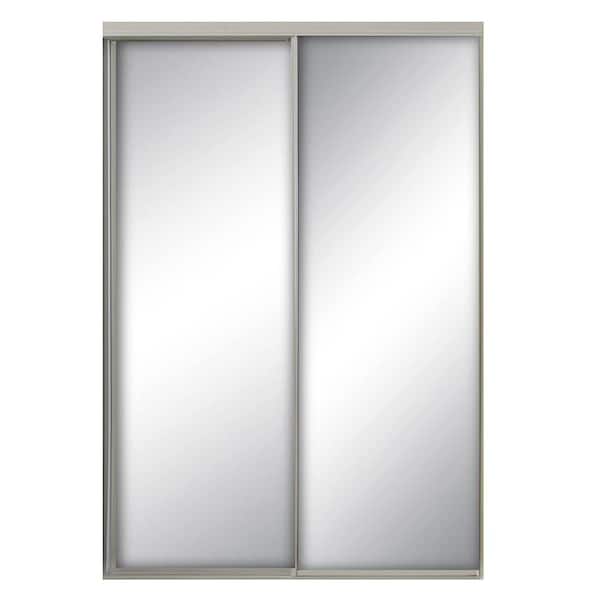 59 in. x 96 in. Savoy White Steel Frame Mirrored Interior Sliding Closet Door