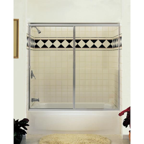 Model 500 59 in. x 57 in. Framed Bypass Sliding Tub Enclosure in Satin Clear with Clear Glass and Color-Matched Handle