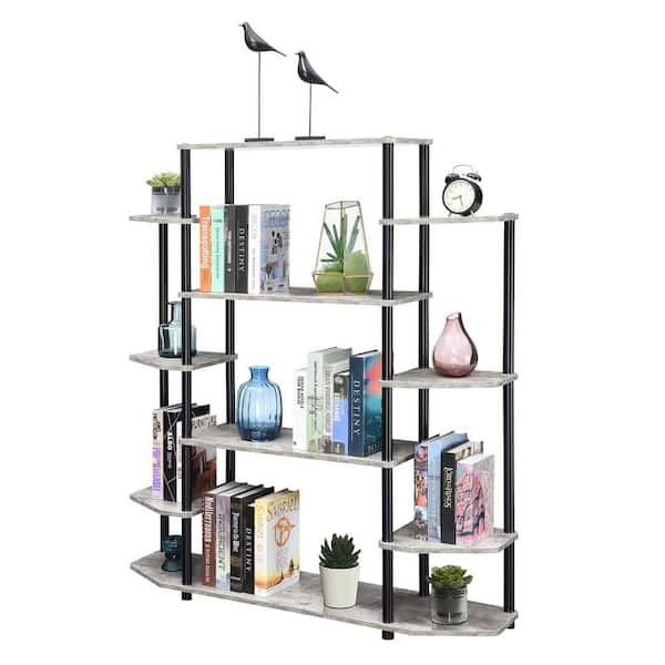 52.5 in. Faux Birch and Black Metal 10-Shelf Etagere Bookcase with Open Back