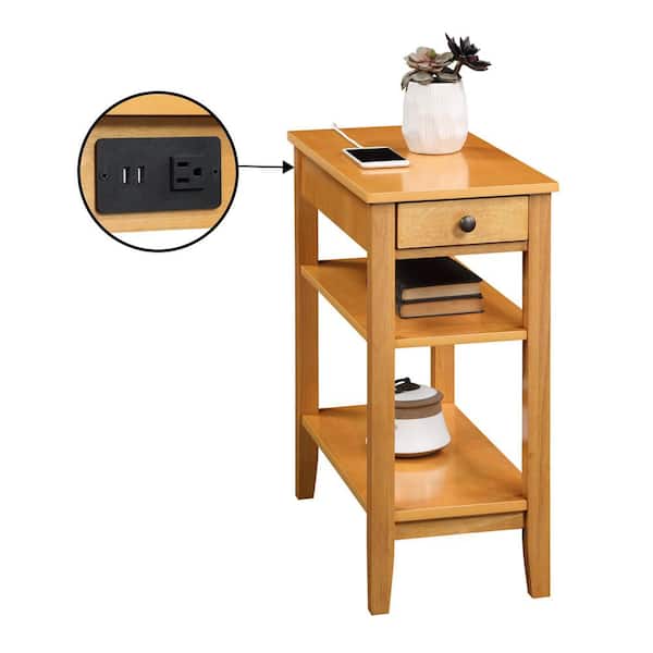 American Heritage 11.25 in. W Natural Rectangular Wood Veneer End Table with Charging Station
