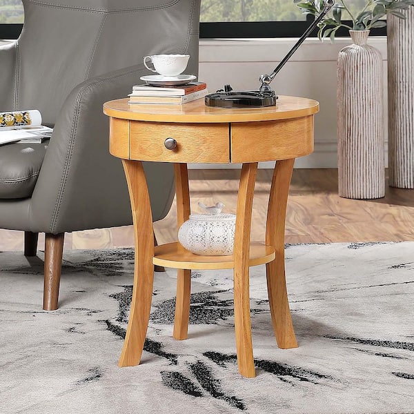 Classic Accents Schaffer 20 in. Natural 24 in. Round Wood End Table with Drawer and Shelf