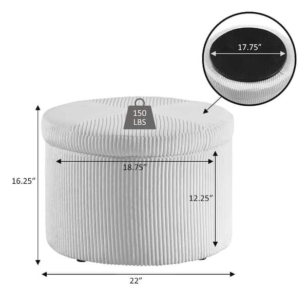Designs 4 Comfort Ivory Polyester Corduroy Round Shoe Storage Ottoman with Reversible Tray Lid