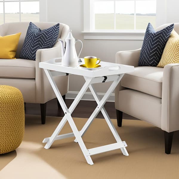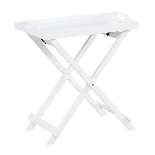 Designs2Go 22 in. White Standard Rectangle Wood Folding Tray End Table