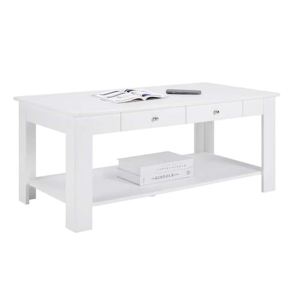 Designs2Go Baja 40 in. White Rectangle MDF Coffee Table with Shelf