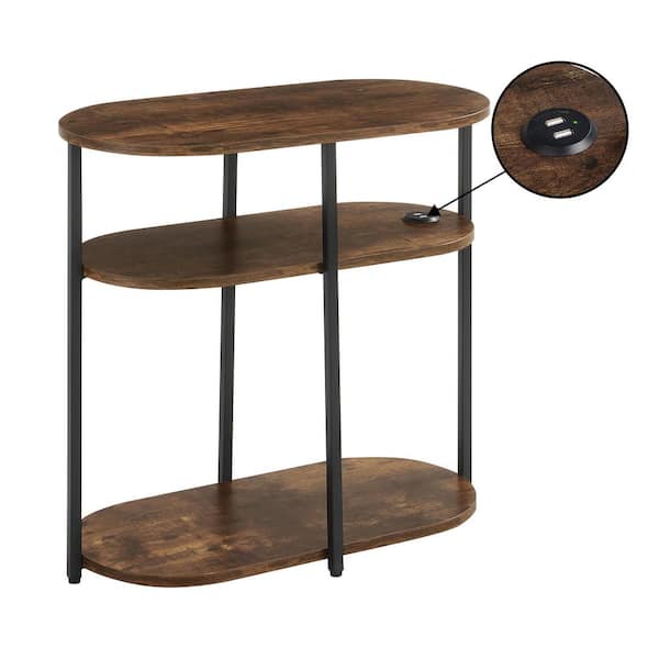 Designs2Go Simon 23.75 in. W Barnwood and Black Wood 3 Tier Oval Chairside End Table with USB Ports