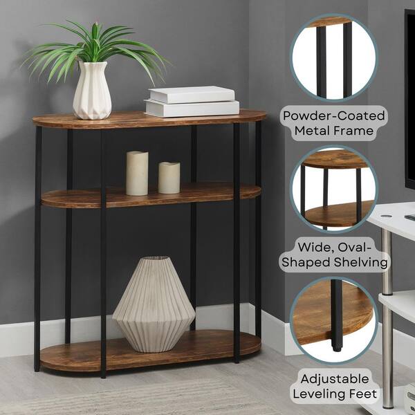 Designs2Go Simon 31.5 in. Barnwood and Black Wood 3 Tier Oval Entryway Console Table