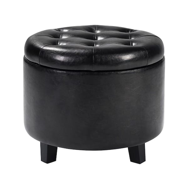 Designs4Comfort Black Faux Leather Round Storage Ottoman