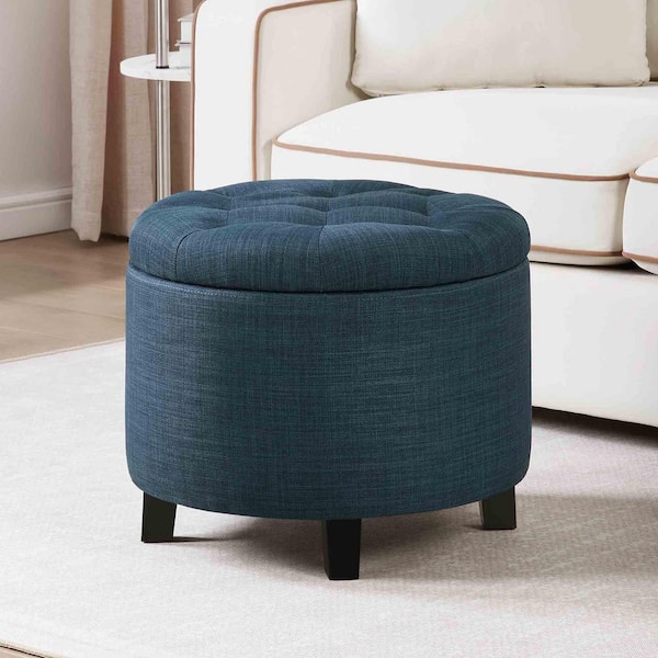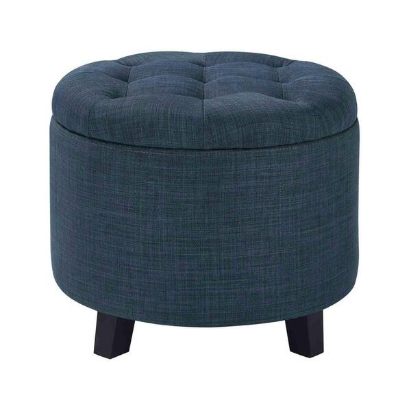 Designs4Comfort Dark Blue Fabric Round Storage Ottoman