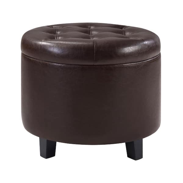 Designs4Comfort Espresso Faux Leather Round Storage Ottoman
