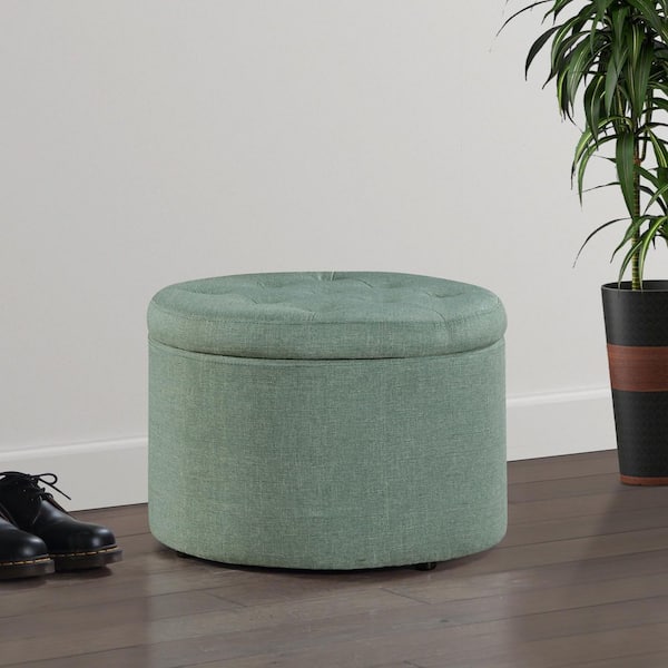 Designs4Comfort Green Faux Linen Round She Storage Ottoman